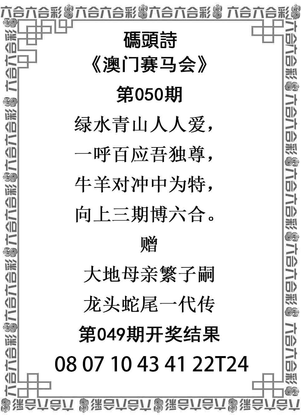 049期:单双中特【双数+兔牛】开:羊24准